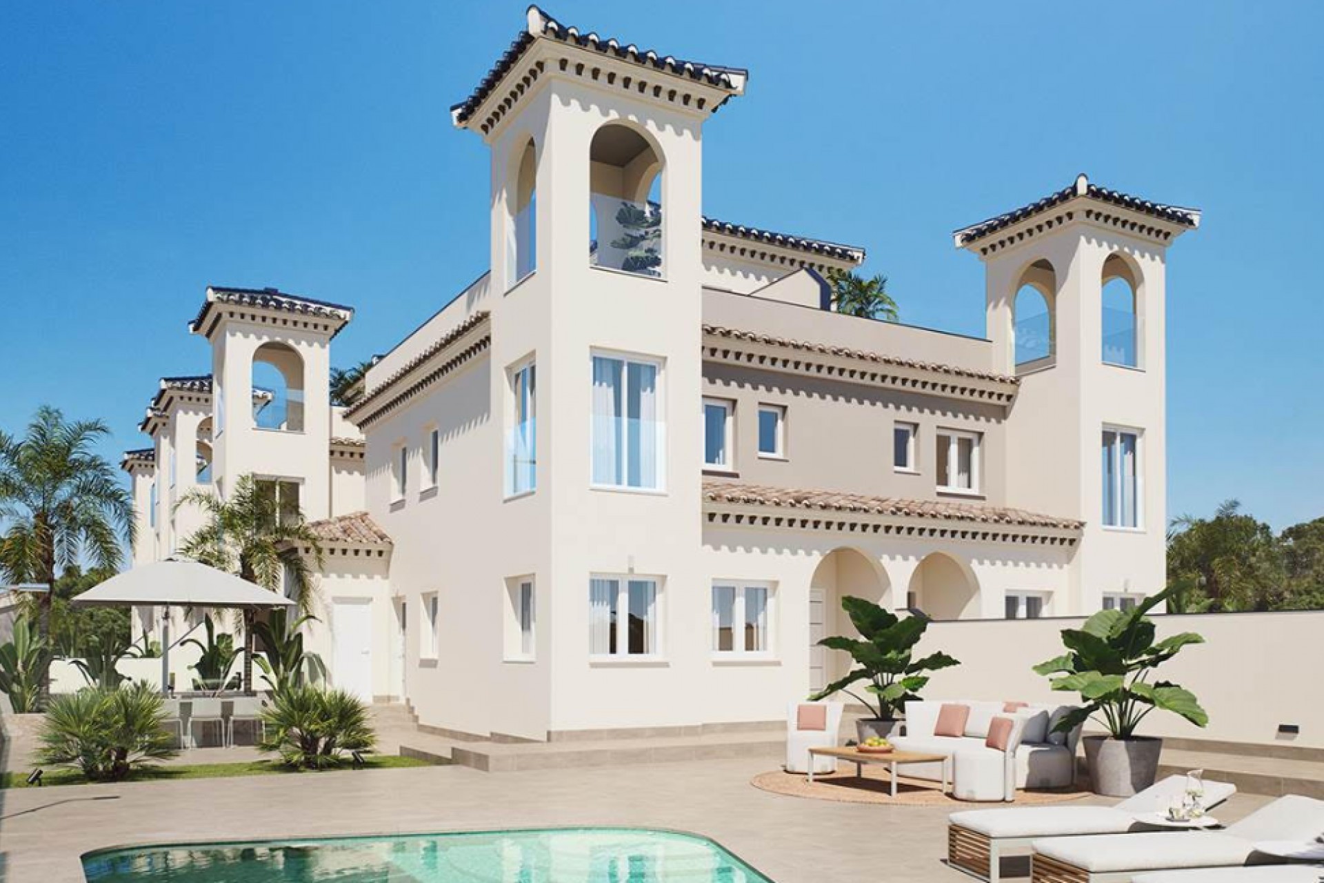 Exklusive Wohnhäuser mit Blick über die Vega Baja – 4 Schlafzimmer, Solarium und privater Garage Entdecken Sie diese exklusive Ansammlung von 10 Doppelhaushälften, die sich in einer erhöhten Lage in Bigastro befinden. Genießen Sie von hier aus beeindruckende Panoramaaussichten auf die umliegenden Landschaften und die malerischen Dörfer der Vega Baja. Ein privilegierter Ort für diejenigen, die Ruhe in der Natur suchen, ohne auf die Nähe zu allen Annehmlichkeiten verzichten zu müssen. Diese modernen Wohnhäuser wurden entworfen, um maximalen Komfort und Funktionalität zu bieten. Jedes Chalet verfügt über 4 großzügige Schlafzimmer und 3 Badezimmer sowie ein spektakuläres privates Solarium von 39 m². Dieser Bereich eignet sich hervorragend, um unter der Sonne zu entspannen oder die Sonnenuntergänge zu bewundern, begleitet von den charakteristischen Orangenblütendüften der Region. Des Weiteren steht Ihnen eine geschlossene Einzelgarage im Untergeschoss mit direktem Zugang zu Ihrem Zuhause zur Verfügung, ebenso wie ein privates Grundstück, auf dem Sie optional einen Pool hinzufügen können, um Ihre persönliche Oase zu schaffen. Diese Häuser sind in einem modernen und ruhigen Wohngebiet gelegen und ermöglichen Ihnen, den authentischsten mediterranen Lebensstil zu genießen – nur wenige Minuten vom Zentrum von Bigastro entfernt. Dort finden Sie alle notwendigen Annehmlichkeiten für den Alltag: Bildungseinrichtungen, Gesundheitseinrichtungen, Einkaufsmöglichkeiten, Grünflächen und Kulturstätten, alles in einer Umgebung, die von der Natur umgeben und gut vernetzt ist. Diese einzigartige Gelegenheit bietet Ihnen die Möglichkeit, in einer der charmantesten Regionen im Süden von Alicante zu leben.