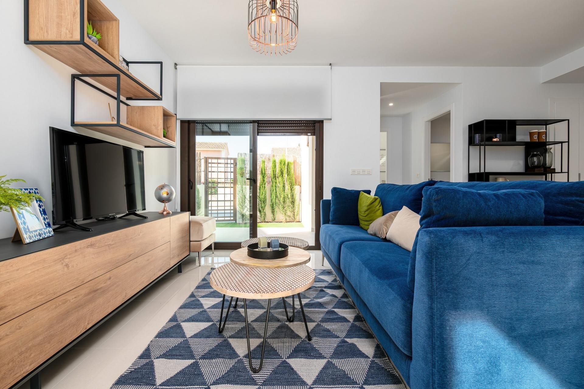 NOUVELLE CONSTRUCTION RÉSIDENTIELLE À LA FINCA GOLF Nouveau complexe résidentiel de bungalows et de maisons de ville à La Finca Golf. Les bungalows modernes ont 2 chambres, 2 salles de bains, une cuisine ouverte intégrée à l'espace de vie qui relie les chambres, les salles de bains et la terrasse. cuisine ouverte intégrée à l'espace de vie reliant les chambres, les salles de bains et la terrasse. Les bungalows du rez-de-chaussée ont des terrasses et des jardins, les bungalows du dernier étage ont des terrasses et des solariums à l'étage supérieur. L'orientation sud permet un éclairage naturel à tout moment de l'année et un chauffage naturel de l'aube au coucher du soleil, ce qui réduit la consommation d'énergie. Les propriétés ouvertes sont dotées de fenêtres et de portes coulissantes qui permettent une ventilation croisée et laissent entrer la lumière. Les propriétés sont situées de manière à ce que la lumière puisse pénétrer partout, tout en offrant des coins frais et douillets. Le nouveau développement a lieu sur un terrain incroyable où les maisons ont été mises en œuvre avec un design soigné et de grands espaces pour atteindre un maximum de confort. Sa conception est axée sur le confort et le bien-être de ses résidents et combine le style contemporain et le caractère méditerranéen. Elle combine le style contemporain et le caractère méditerranéen, héritant de la morphologie traditionnelle avec l'utilisation de pierres sur la façade et les auvents. Les cuisines seront livrées entièrement meublées avec un design actuel de meubles hauts et bas de grande capacité. Les meubles bas sont en stratifié laqué blanc mat et les meubles hauts en bois en bois mélaminé avec texture sur les colonnes. Profil de poignée semi-cachée avec système gola*. Plan de travail dans la zone de travail et la péninsule Quarz Compac Blanco Luna ou similaire. Porte principale blindée avec finition laquée blanche sur le vantail intérieur et texture brune sur l'extérieur. Judas optique et serrure de sécurité. Portes intérieures laquées blanches, avec façade à trois bandes et poignées rectangulaires en acier inoxydable. Armoires encastrées avec portes coulissantes blanches. Fenêtres et portes coulissantes en menuiserie d'aluminium marron avec finition texturée. Fenêtres oscillo-battantes dans les salles de bains, avec verre dépoli et stores manuels. Stores électriques et motorisés, finition en aluminium texturé marron. Tous les stores sont connectés au système domotique et sont synchronisés pour se fermer et s'ouvrir, et peuvent être commandés à partir de l'application. Double vitrage spécial avec contrôle solaire et faible émissivité, pour profiter au maximum de la lumière naturelle et économiser sur les coûts énergétiques. Aspect esthétique optimal, couleur exceptionnelle et reflets minimes. Certification énergétique classe A Les propriétés offrent un niveau élevé de certification énergétique. Ceci est possible grâce à l'isolation thermique des toits et des murs, aux menuiseries en aluminium avec double vitrage, et à l'installation de 5 panneaux solaires par bloc Les logements sont équipés de prises électriques et de télécommunications exigées par le Règlement Electrotechnique de Basse Tension. Interphone pour la communication entre le logement et l'entrée principale. Nous incluons un système domotique avancé pour contrôler les stores motorisés et trois points lumineux. Mécanismes de la série Legrand Valena Next pouvant être connectés au système de domotique. Pré-installation de la climatisation : centrale ou split selon le modèle. Système d'alarme complet avec un capteur par pièce, panneau tactile et sirène. Le nouveau projet est situé à La Finca Golf. Il est situé à côté de la première ligne de golf, face au 11ème fairway du terrain de golf de La Finca, l'un des complexes les plus emblématiques du sud-est de l'Espagne et un refuge commun pour les amateurs de golf. Situé à seulement 4 minutes d'Algorfa, sur la Costa Blanca Sud, ce complexe avec parking couvert, piscine communautaire et jardins est l'endroit idéal pour ceux qui veulent profiter du style de vie méditerranéen : proximité de la plage, du golf et des montagnes, entouré de tranquillité, mais avec un accès à tous les types de services et de zones de loisirs. À quelques minutes des plus belles plages du sud de la Costa Blanca et de lieux d'une beauté exceptionnelle comme la Laguna Rosa de Torrevieja ou les Dunes de Guardamar del Segura. Sa proximité et son accès facile à l'autoroute AP-7 et aux principales routes nationales permettent de rejoindre de nombreuses villes de la Costa Blanca telles qu'Orihuela, Cartagena, Elche, Murcia et Alicante. Les aéroports d'Alicante et de Murcie se trouvent à moins de 30 minutes de route et sont reliés aux principales capitales européennes.